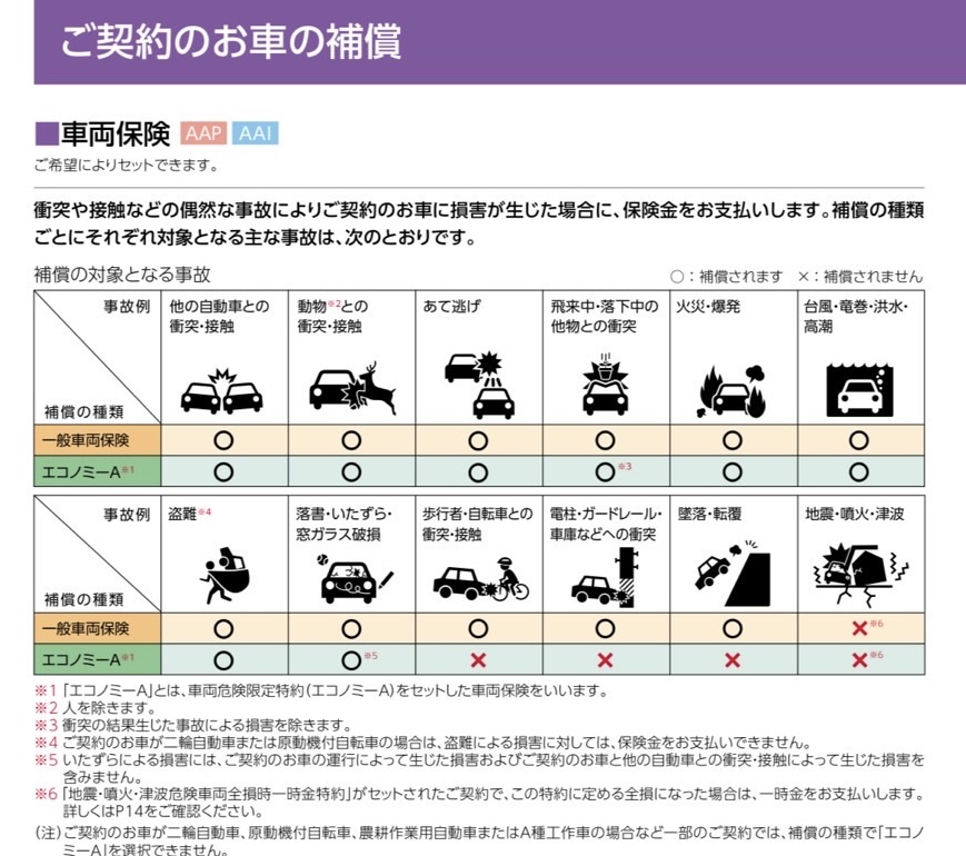そして、いい機会なので今一度、エコノミー車両保険でどこまで補償されるか確認しておいて頂けますと幸いです。